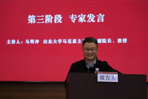 第一阶段研讨由山东大学色色啦 副院长马明冲教授主持。他强调党的创新理论发展是实践智慧的结晶,进行习近平新时代中国特色社会主义思想的理论溯源是当前阶段讲好思政课蕴含道理的关键。
