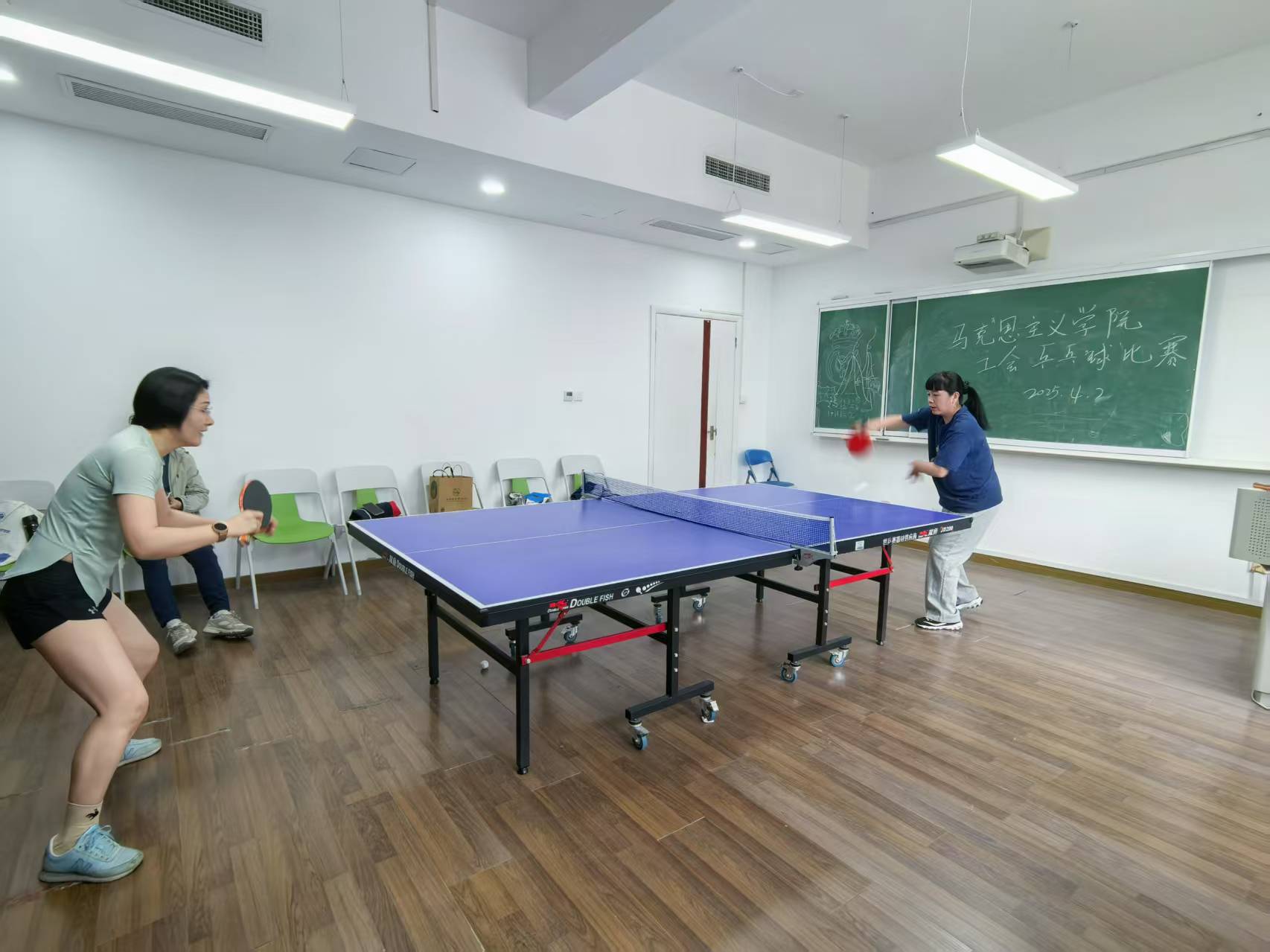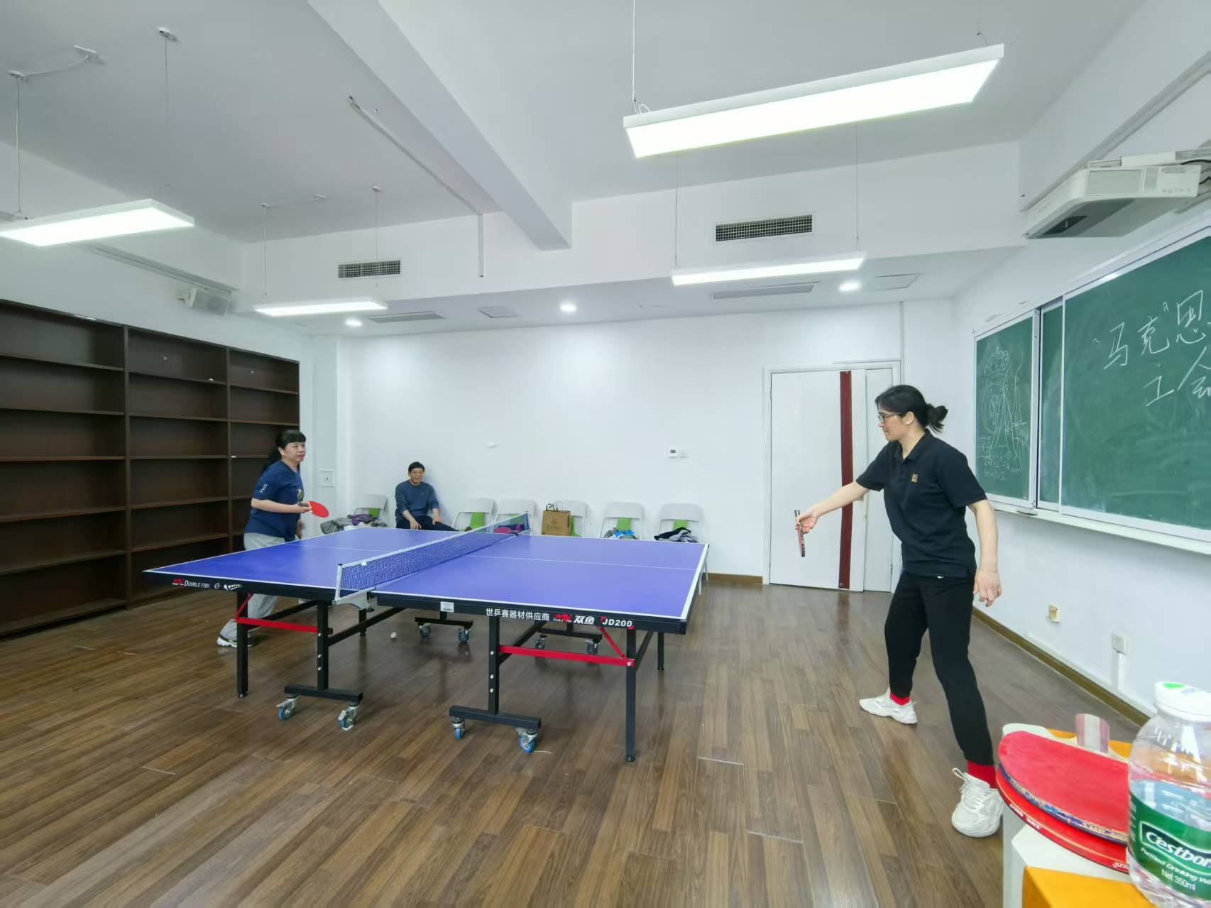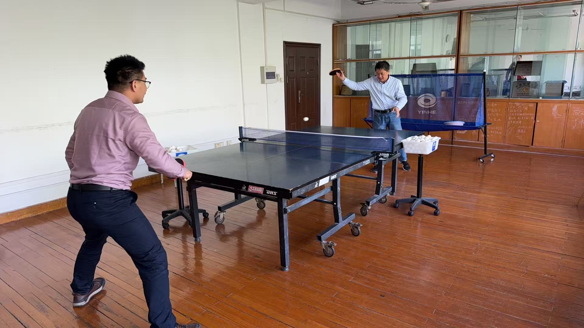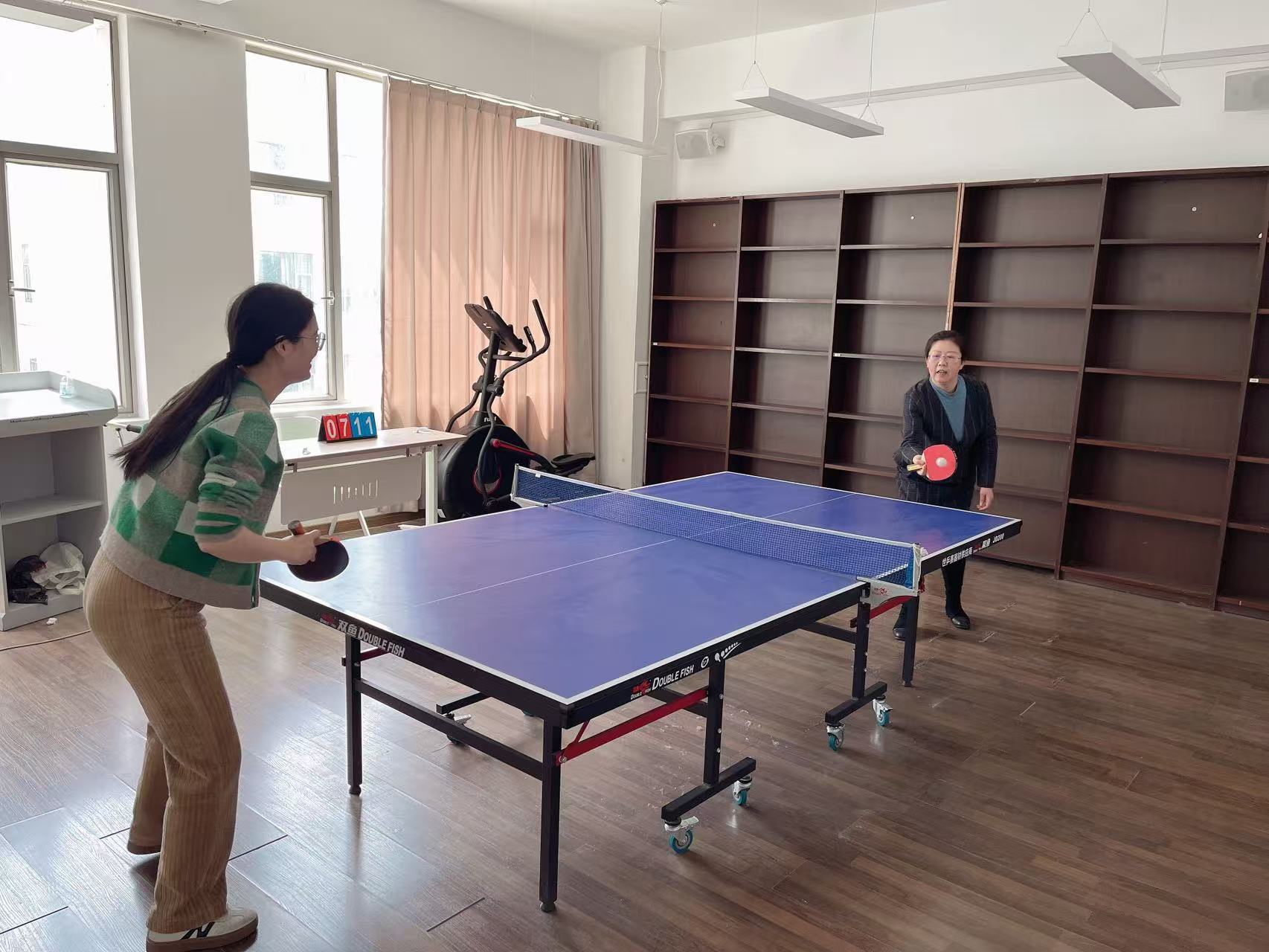 比赛过程中,选手们或凌厉扣杀,或巧妙搓球,白色弧线在灯光下划出优美轨迹。混双赛中,黄亚玲老师、侯艳兴老师的“党史组合”以默契的跑位连克强敌;老教授丁晓强老师“宝刀未老”,接连取得男子单打、男子双打冠军,引得全场喝彩;黄亚玲老师巾帼不让须眉,杀伐有力,接连夺得女子单打、女子双打、男女混双、挑应战赛冠军。参赛选手们每一次挥拍都凝聚专注,每一声“好球”都饱含真诚,汗水与欢笑交织成最动人的赛场画卷。